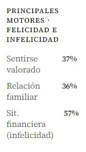 «Sentirse valorado (37%) y la relación con la familia (36%) lideran los motores de la felicidad, pero la economía personal sigue definiendo la infelicidad.»